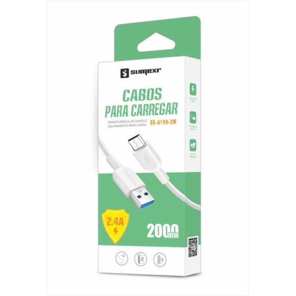O cabo SX-B29-V8 é perfeito para recarregar a bateria do seu aparelho com segurança e velocidade. Suporte a carregamento rápido de 3.1A e transferência de dados de alta velocidade. Dupla camad...