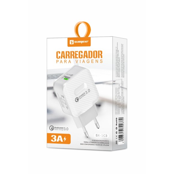O carregador SX-QC3 é perfeito para dar aquela carga rápida no seu celular sem danificar a bateria.