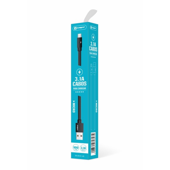 Cabo para carregamento e transferência de dados SX-B101-V8 é a solução perfeita para o carregamento turbo e rápido do seu smartphone com entrada micro USB e transferência de dados.