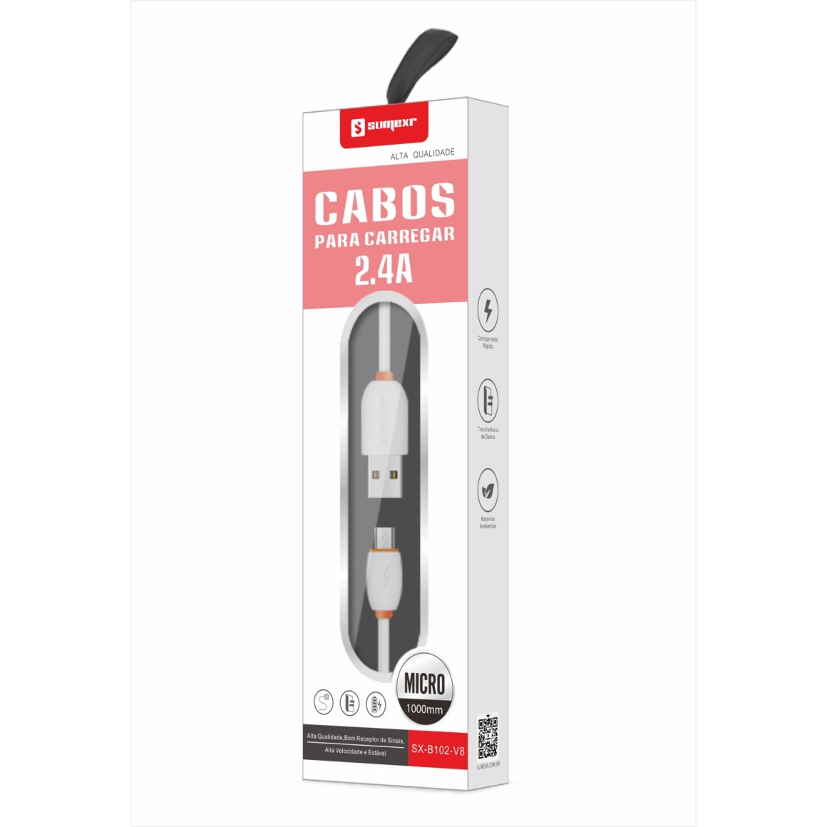 O cabo SX-B102-V8 é perfeito para recarregar a bateria do seu aparelho com segurança e velocidade.